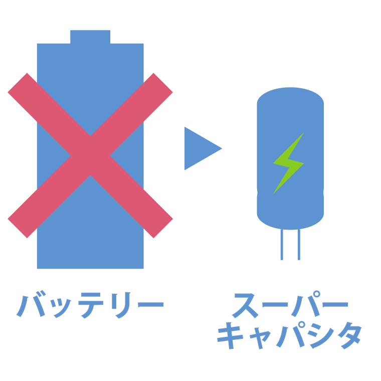 バッテリーの代わりに蓄電量が多いコンデンサ、スーパーキャパシタを電源としたモデルです。