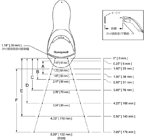 ![MODEL MS5145 Eclipse 普及型ハンド式レーザスキャナ[Honeywell]|ウェルコムデザイン 読取フィールド参考図](../../photo/ms5145/ms5145_field.gif) |